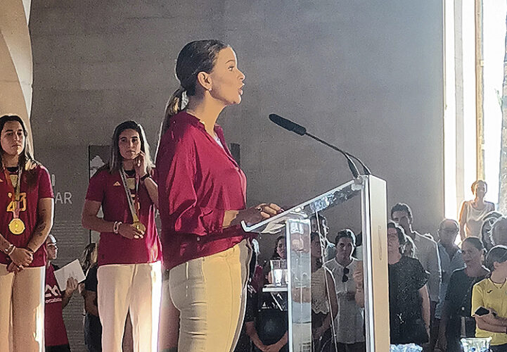 La presidenta del Govern Balear, Marga Prohens, realizó un discurso inspirado en cada una de las dos estrellas del fútbol mallorquín, destacando en cada caso sus respectivas trayectorias y aportando guiños cómplices que revelaban gran conocimiento de sus biografías y destacando la importancia que este logro tiene para todo el deporte femenino en España. Por su parte las futbolistas le correspondieron con agradecimiento firmando una camiseta que la presidenta no dudó en ponerse al instante.