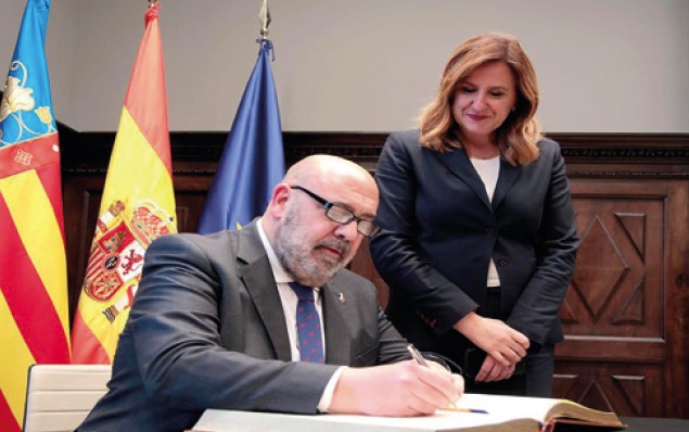 Al finalizar la reunión ha firmado en el libro de honor del Ayuntamiento de Valencia.